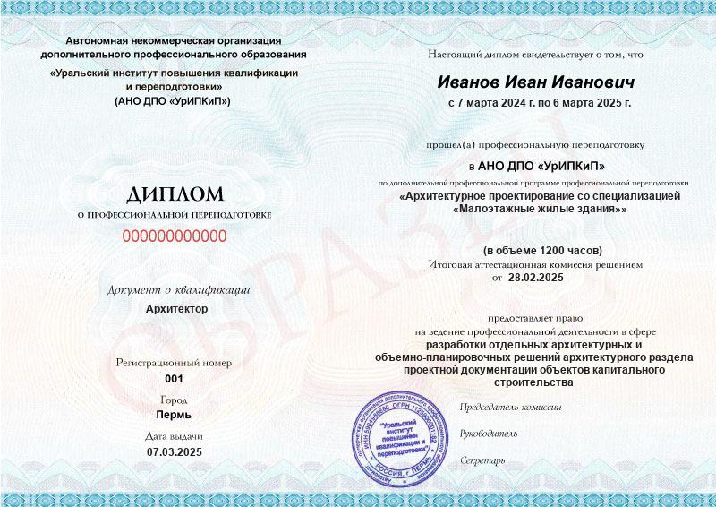 - Получаете диплом с квалификацией архитектора малоэтажных зданий!