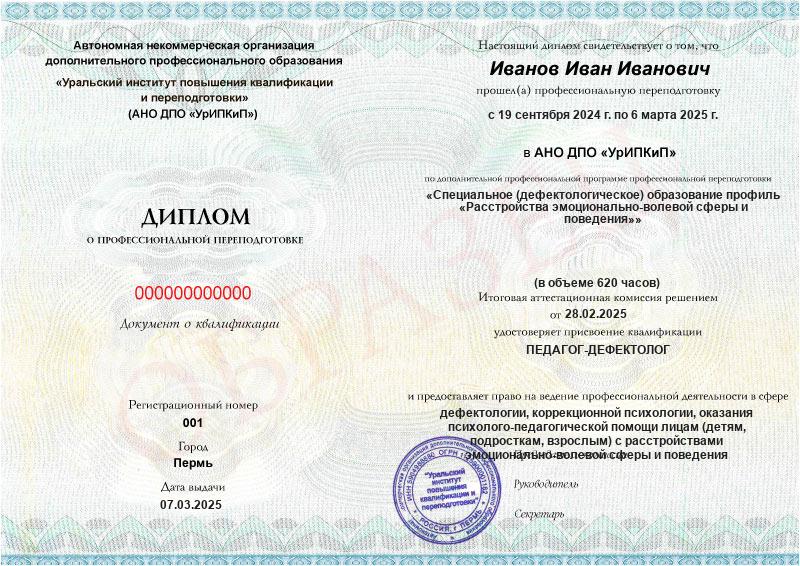 Специальное (дефектологическое) образование профиль «Расстройства эмоционально-волевой сферы и поведения» (620ч)