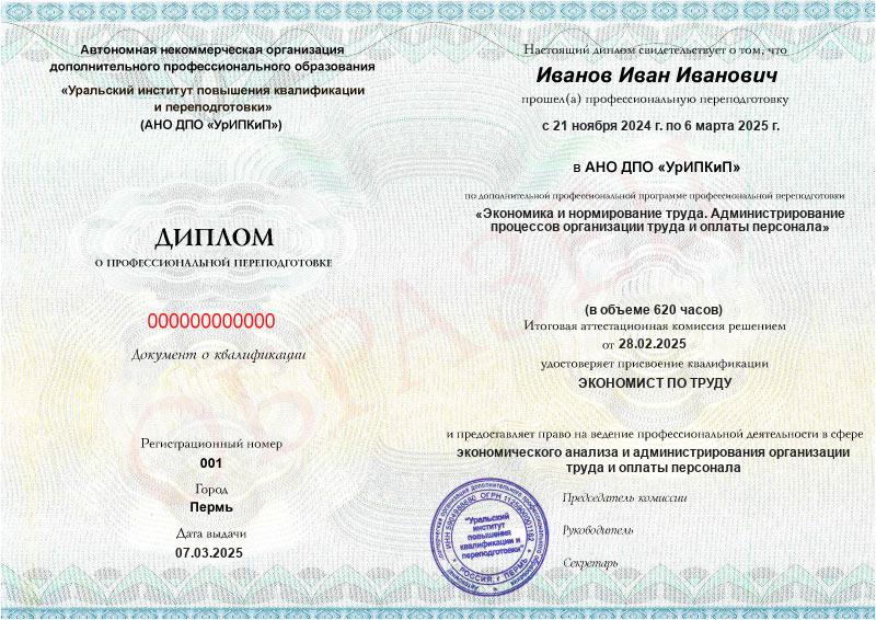 Курс обучения Экономика и нормирование труда. Администрирование процессов организации труда и оплаты персонала (620ч)