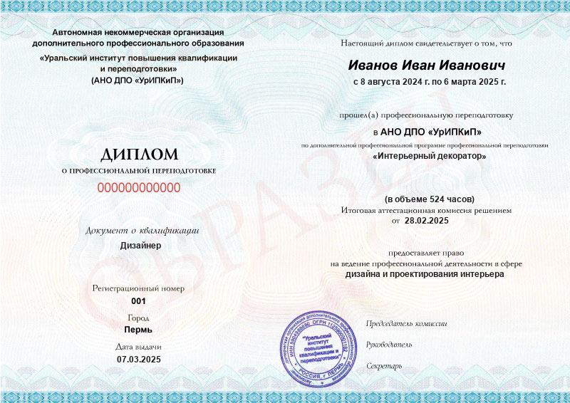 Да, дипломы и удостоверения оформляются в соответствии с действующим законодательством РФ. Документы печатаются на специальных бланках, заверяются печатью АНО ДПО «УрИПКиП».