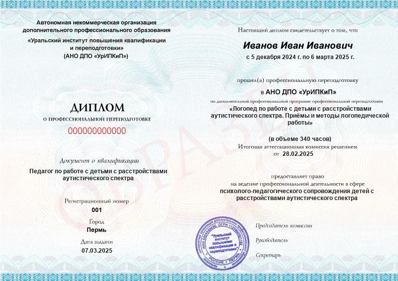 При наличии другой специализации получение диплома на 340 часов по направлению «Логопед по работе с детьми с РАС» не даёт права вести профессиональную деятельность в качестве логопеда, однако, обладая специализированными знаниями, вы можете эффективнее выполнять свою профильную работу, связанную с детьми с РАС.