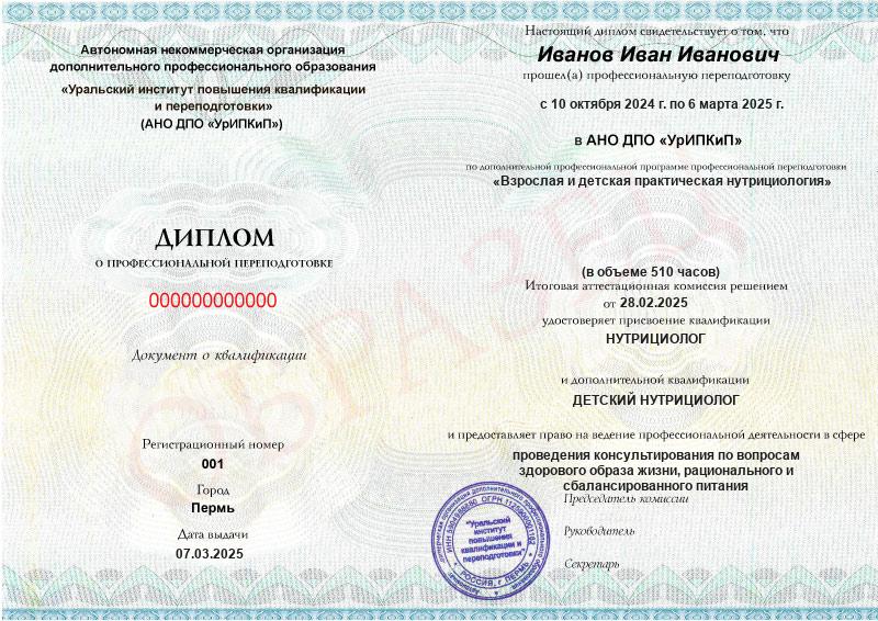 - 2 квалификации: Нутрициолог + Детский нутрициолог