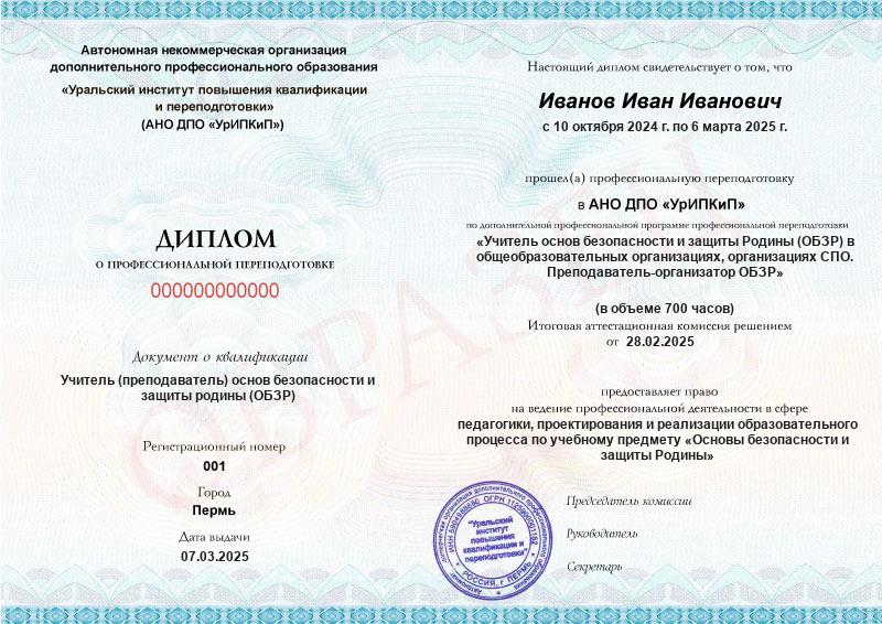 Обзор программы профессиональной переподготовки «Учитель основ безопасности и защиты Родины (ОБЗР) в общеобразовательных организациях, организациях СПО. Преподаватель-организатор ОБЗР» с присвоением квалификации «Учитель (преподаватель) основ безопасности и защиты родины (ОБЗР)» с дополнительной квалификацией «Преподаватель-организатор ОБЗР»