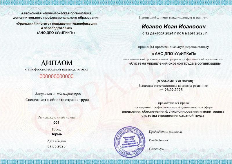Да, дипломы и удостоверения оформляются в соответствии с действующим законодательством РФ. Документы печатаются на специальных бланках, заверяются печатью АНО ДПО «УрИПКиП».
