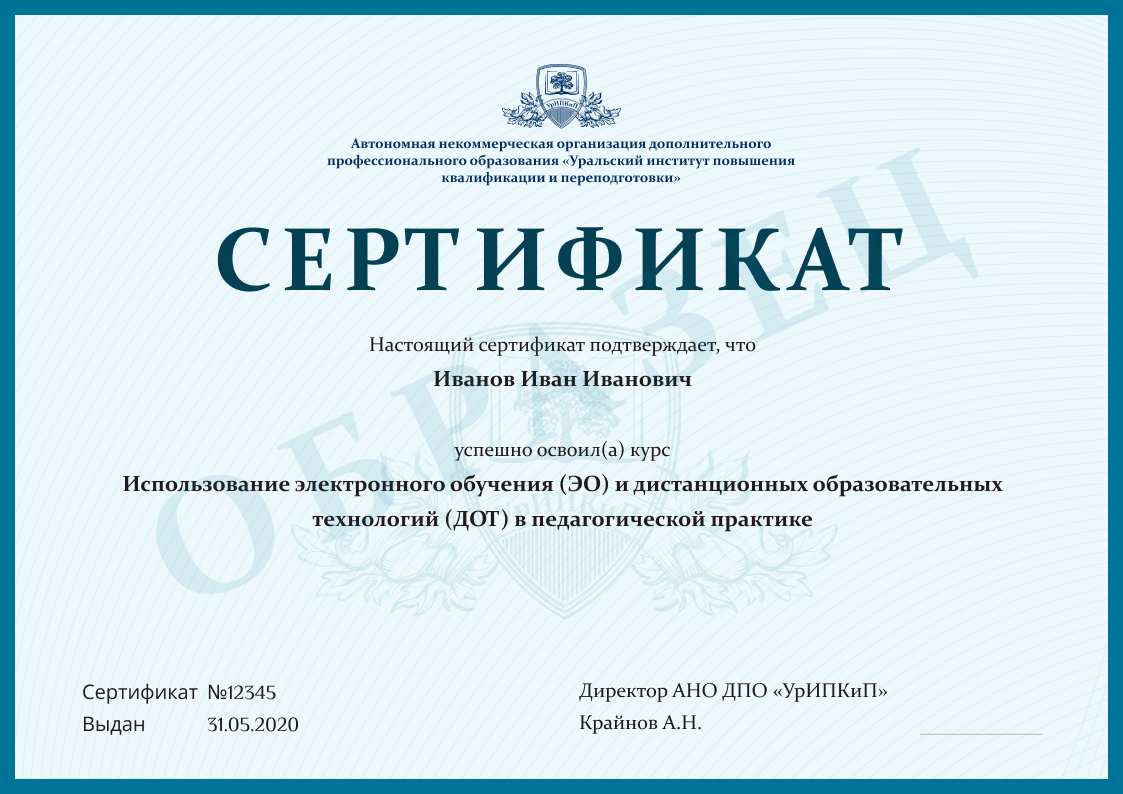 Заполненные образцы выдаваемых документов есть в описании учебных курсов и на странице «Лицензия. Документы», а также на главной странице официального сайта АНО ДПО «УрИПКиП».