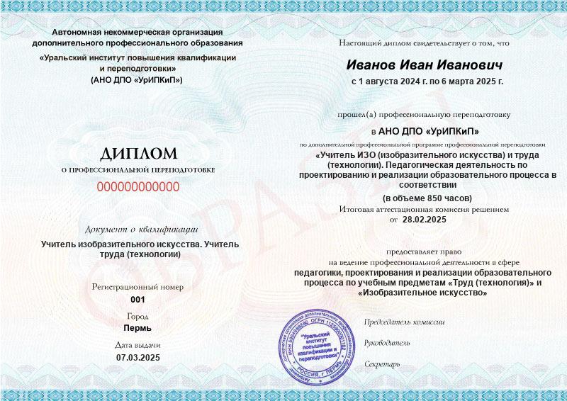 - Образец диплома о профессиональной переподготовке.