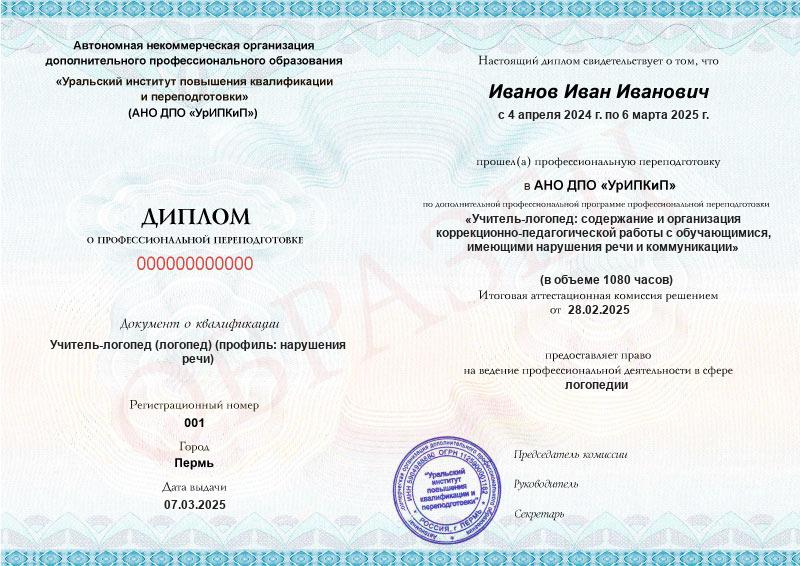 Да, дипломы и удостоверения оформляются в соответствии с действующим законодательством РФ. Документы печатаются на специальных бланках, заверяются печатью АНО ДПО «УрИПКиП».